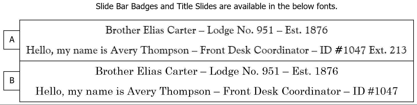 Slide Bar badge, High Twelve, Masonic badge, Magnetic, 3/4" Slide with option of Colors, Titles, Emblems, Attachments for all Masonic Bodies