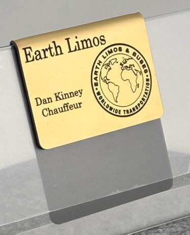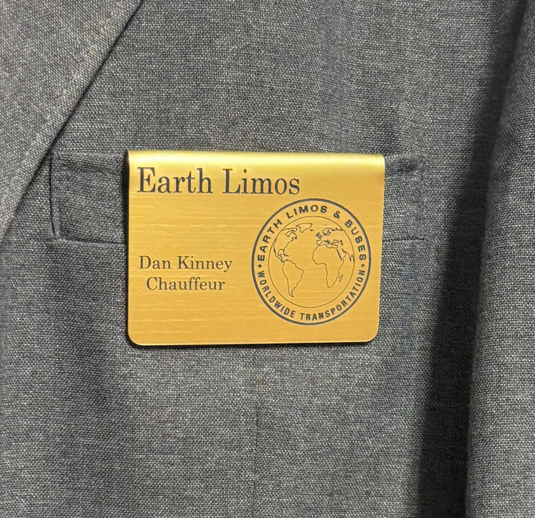 Present a polished, professional image with this custom-engraved name badge designed specifically for chauffeurs, limo drivers, and transportation staff. This fold-over clamshell badge slides securely over a suit or uniform pocket — no pins, magnets, or adhesives required.