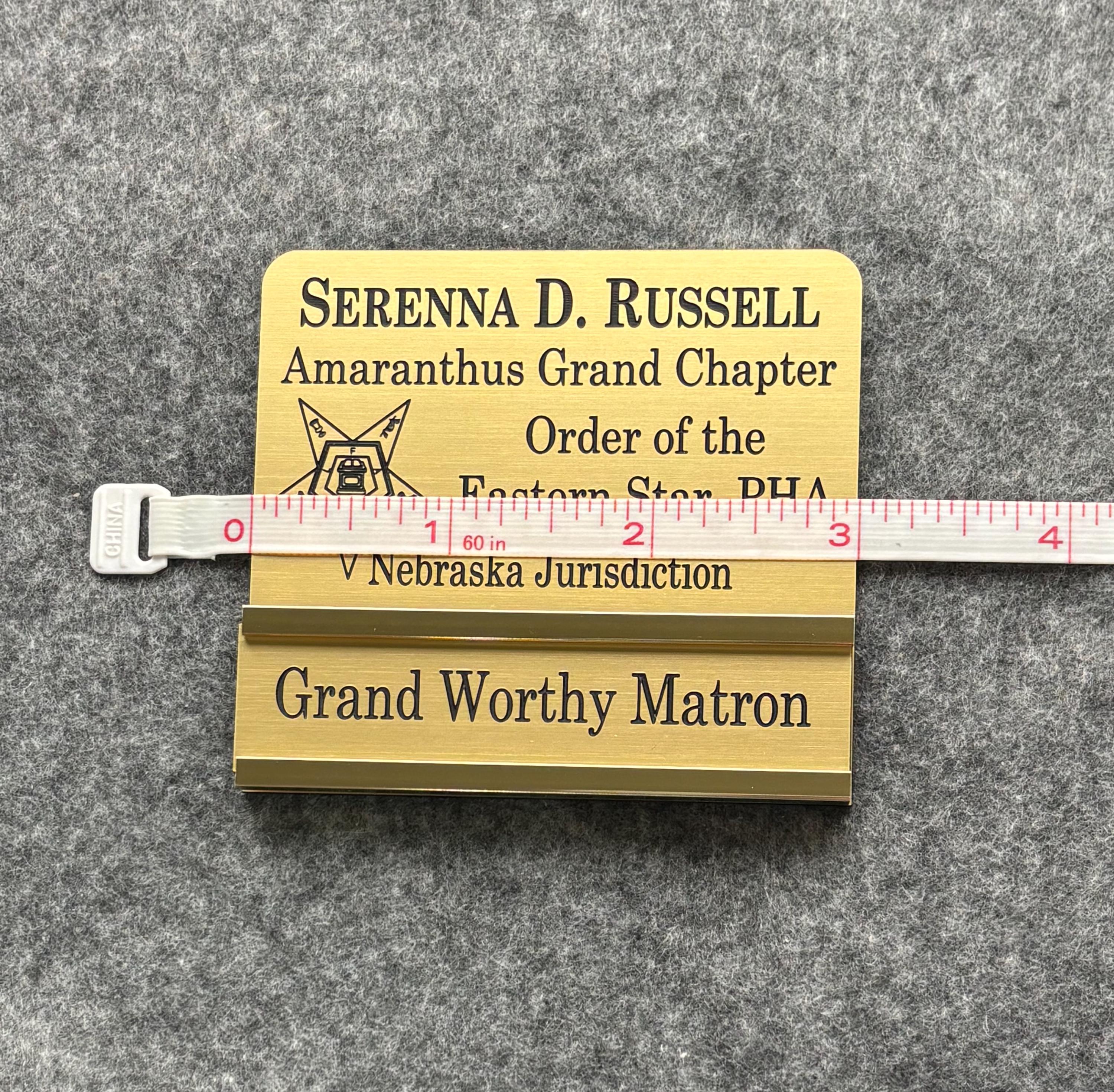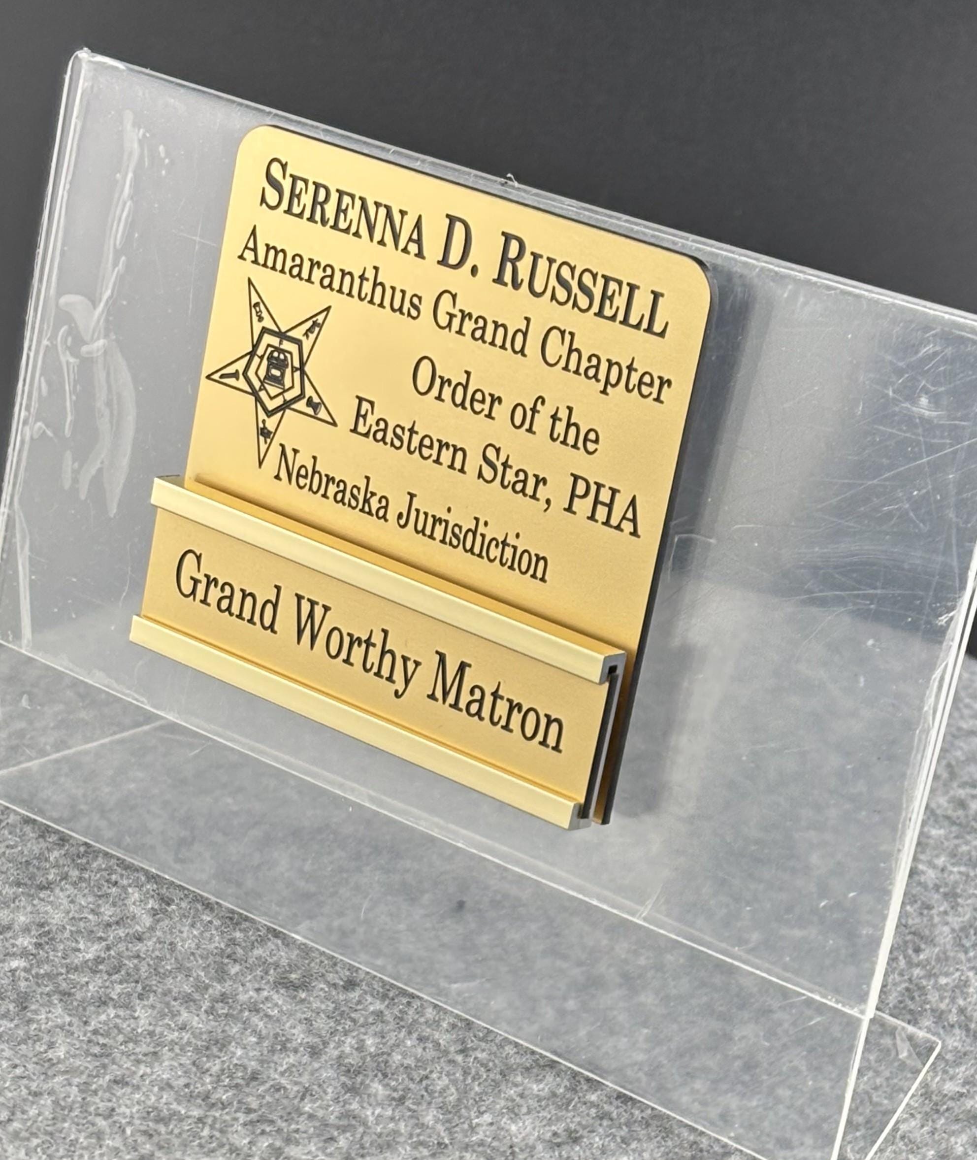A beautifully crafted, custom engraved OES Magnetic Slide Bar Name Badge designed for women who want a polished, professional look without pin holes or fabric damage. The strong magnetic attachment keeps your badge secure while the engraved face and interchangeable title slide stay perfectly aligned and easy to read.